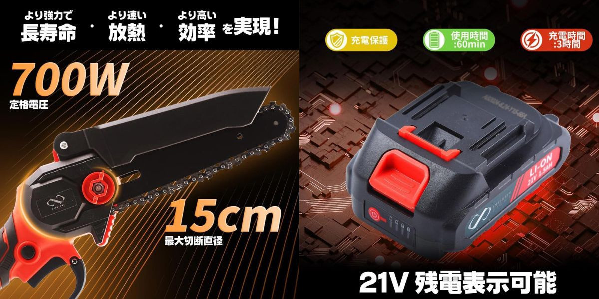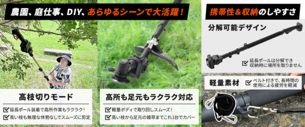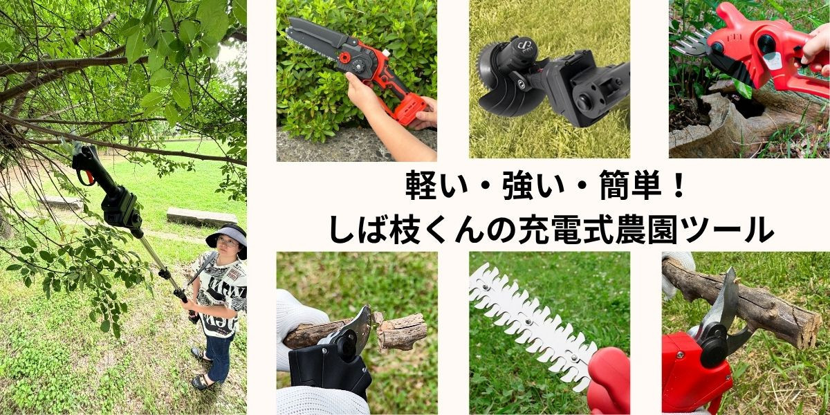 『しば枝くん』はチェーンソー・草刈り機・電動ハサミなど、プロ仕様の機能と使いやすさを