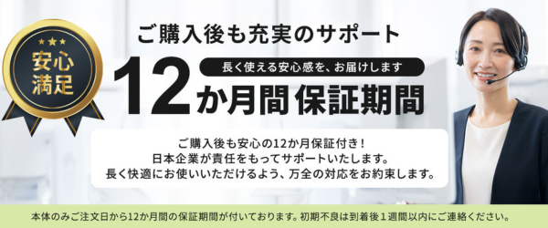 【初心者の方も安心して始められるよう、すべての商品に「12カ月保証」付き】